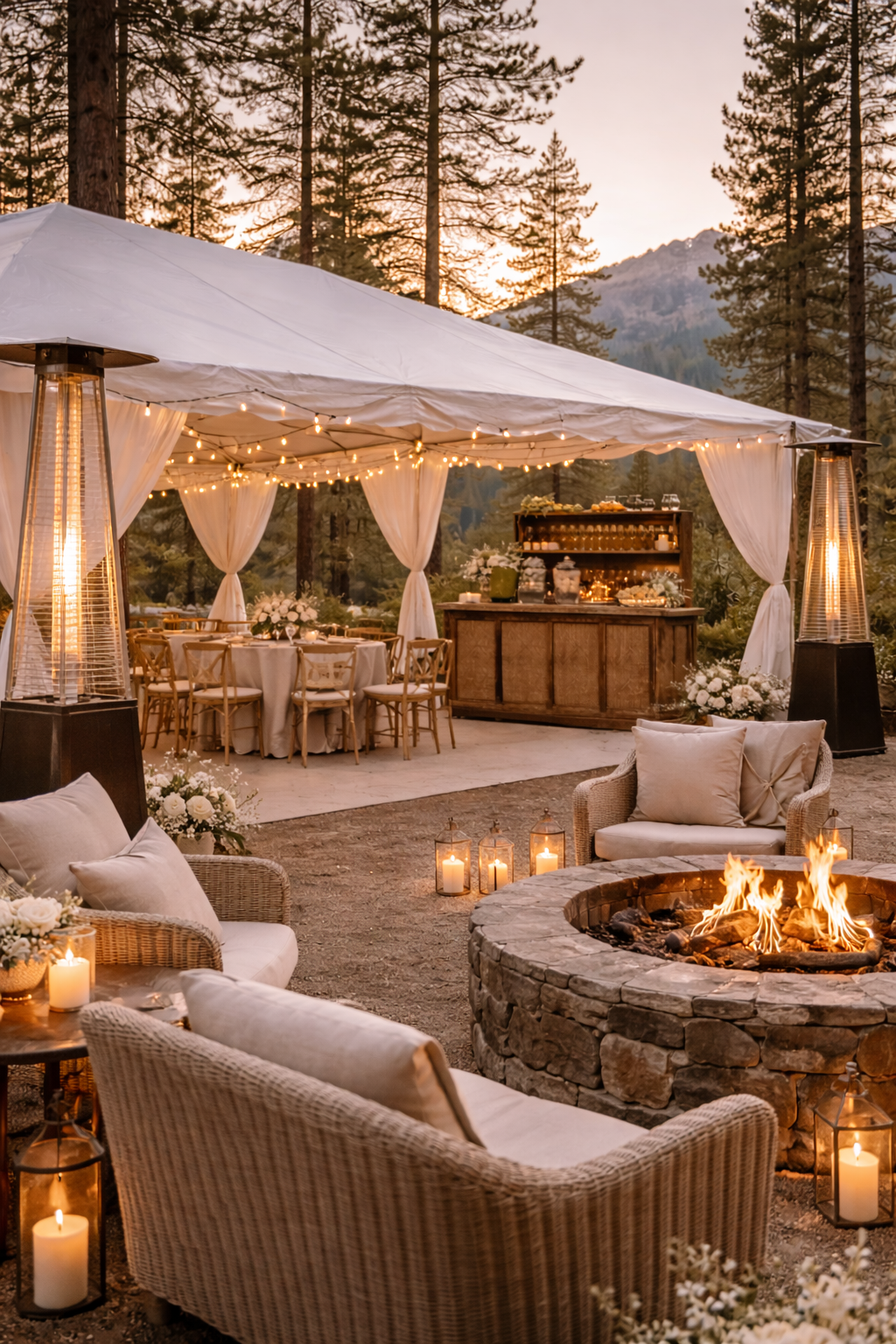 Tents, bars, heaters, table settings, fire pits, and more — delivered and ready for your event.